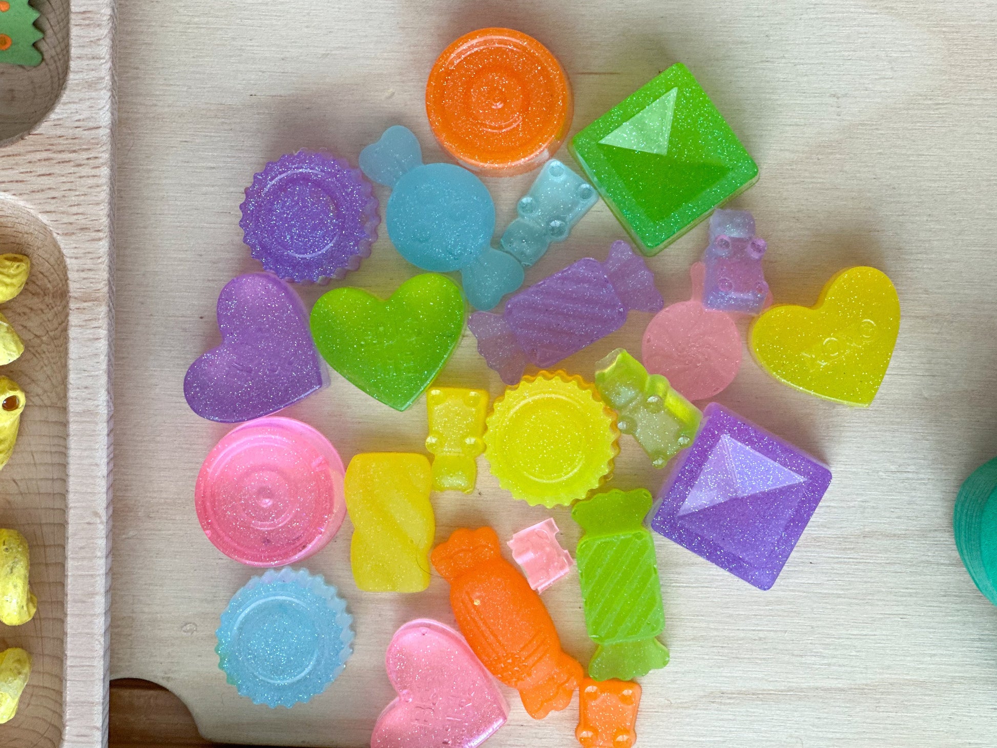 - Valentine’s Day themed acrylic loose parts